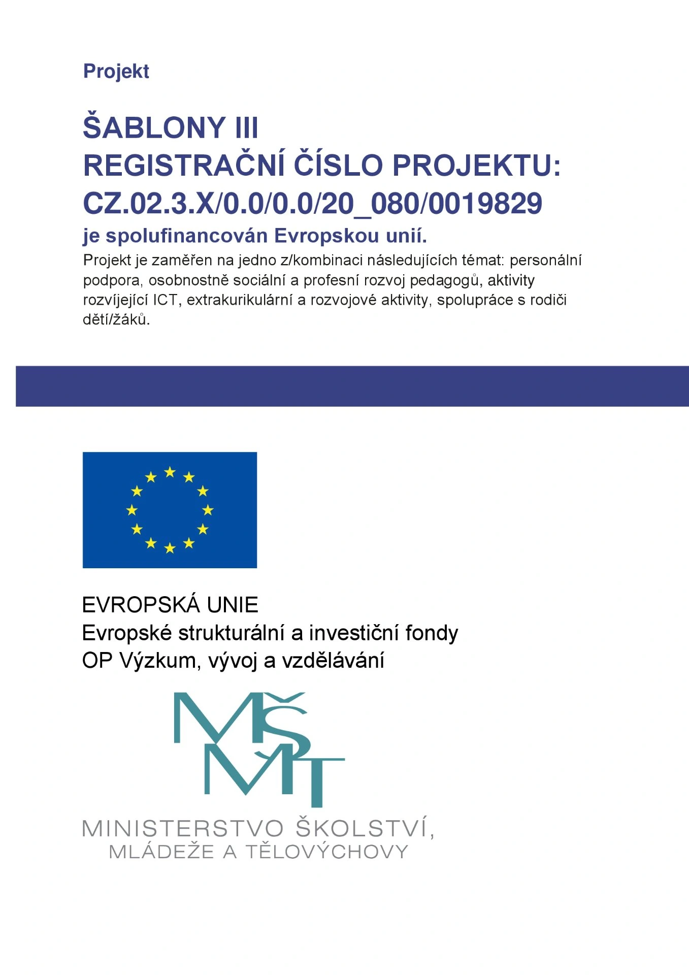 Projekt ŠABLONY III je spolufinancován Evropskou unií.